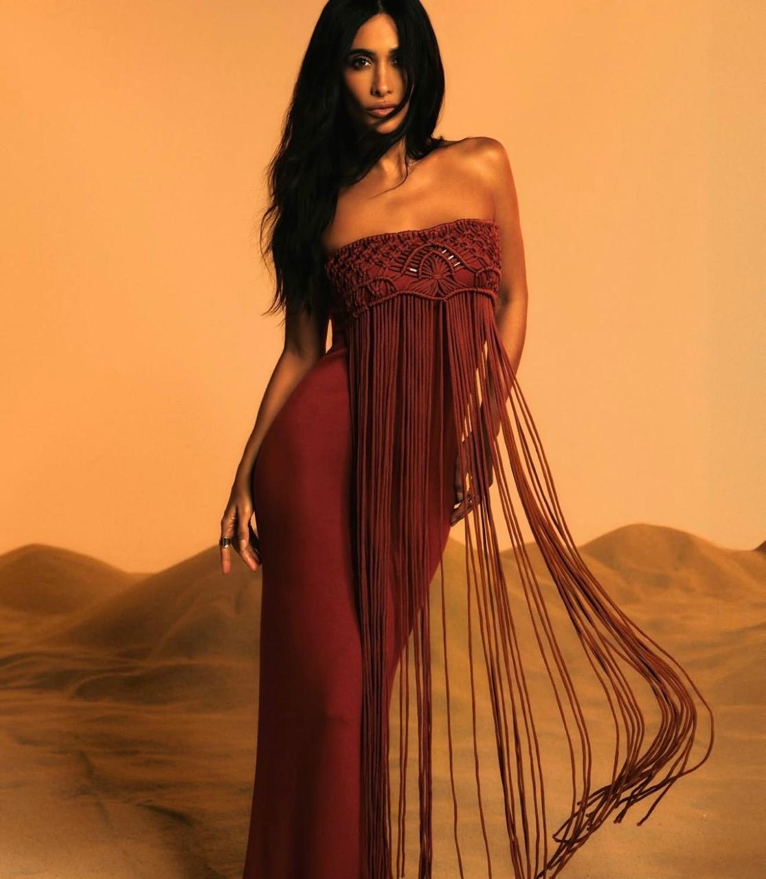 Vestido Coleção Open modelo midi, confeccionado em tecido nobre na malha viscose premium com muito elastano, silhueta justa ao corpo, busto todo estruturado em macramê valorizando o trabalho artesanal, sem bojo, detalhes em aviamentos de metal na cor dourada que adicionam pontos de luz. Uma verdadeira obra de arte têxtil, com uma cascata de franjas longas, criando um movimento espetacular e sofisticado. Na parte de trás possui um fenda central trazendo liberdade de movimento. Uma peça versátil que pode ser usado como vestido ou saia longa, perfeito para diversas ocasiões, de um dia ensolarado a um evento especial à noite.